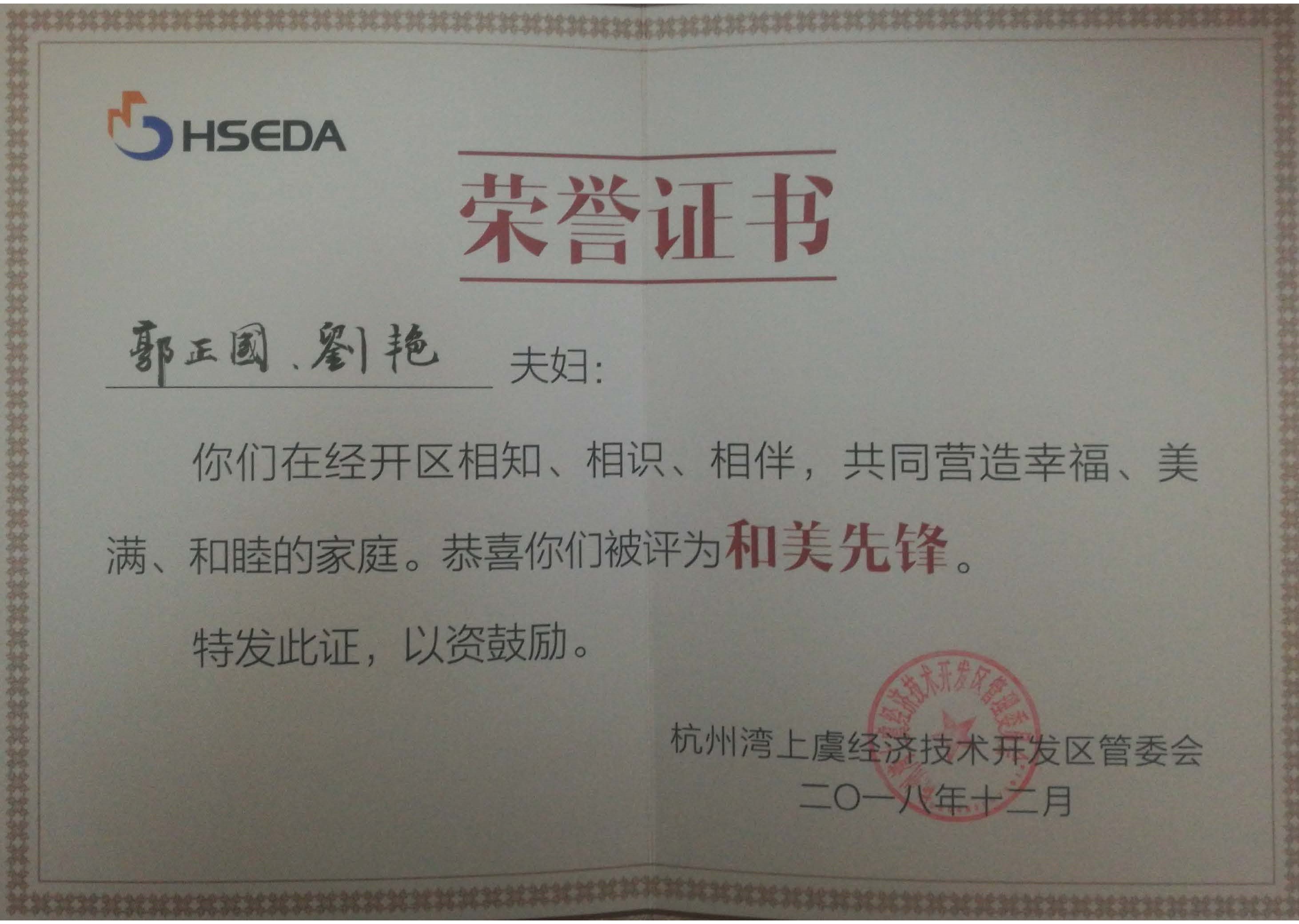 12月23日晚,為表彰先進,杭州灣上虞經濟技術開發區在浙江理工大學科技與藝術學院舉辦了大型職工文藝匯演。十步之澤,必有芳草,文藝匯演現場,上虞區區委常委、常務副區長胡文煒,上虞區區委常委、開發區黨工委書記、管委會主任金山中等為經開區敢于創新、樂于奉獻的建設者們頒發了“和美先鋒”、“奉獻先鋒”、“創新先鋒”、“創業先鋒”等榮譽。揚帆新材在這次頒獎活動中,收獲滿滿,董事長樊彬榮獲了“創業先鋒”,上虞生產基地總經理助理郭正國、質檢部經理劉艷夫婦榮獲了“和美先鋒”,公司對他們獎項的獲得表示祝賀!