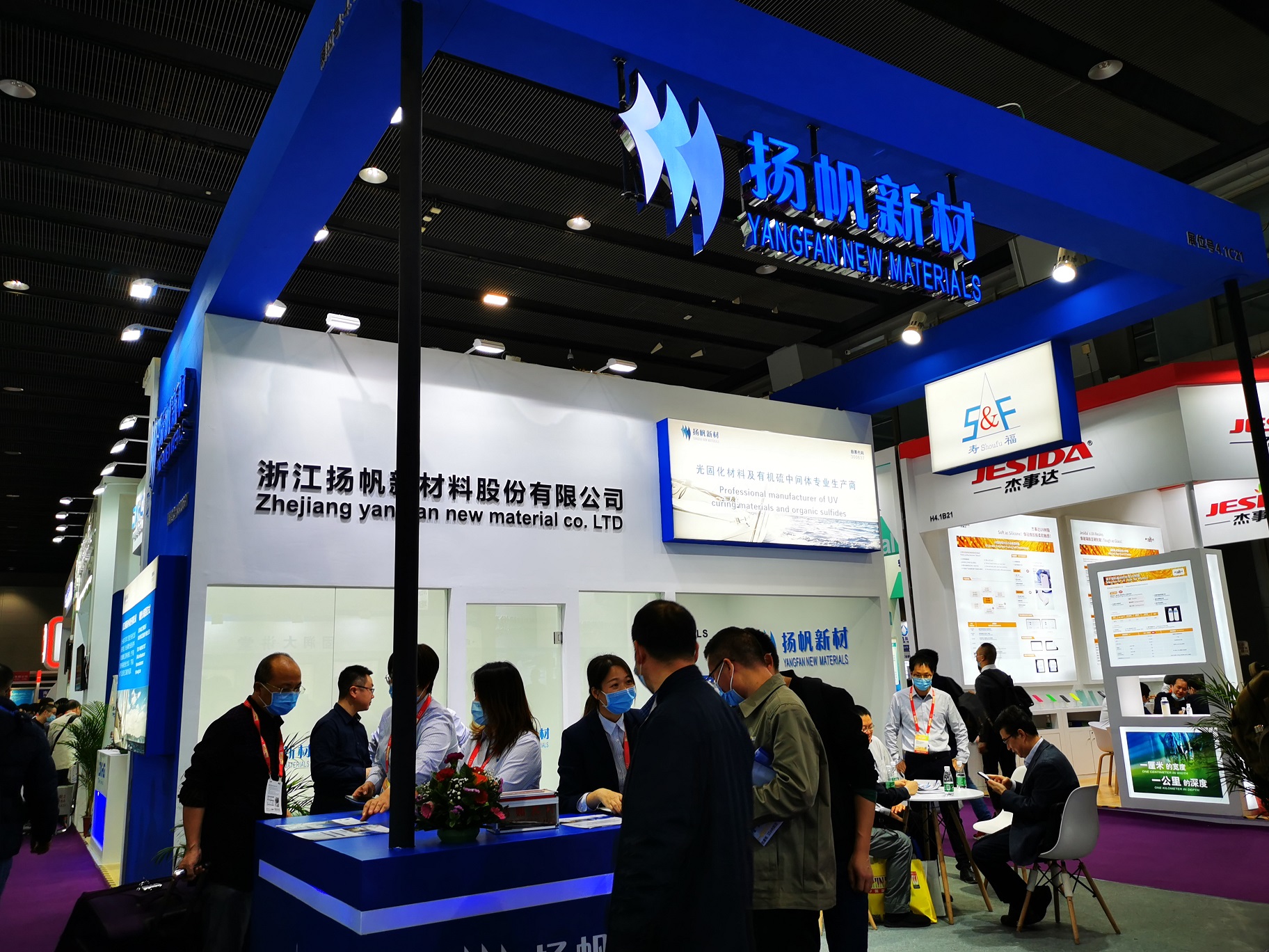 展會期間,“揚帆新材”受到了業內人士的廣泛關注,新老客戶積極洽談。其中,大家對內蒙古揚帆新投產的1173、184、TPO等光引發劑產品進行了深入了解和交流,并對內蒙揚帆未來的產品和發展一致看好。