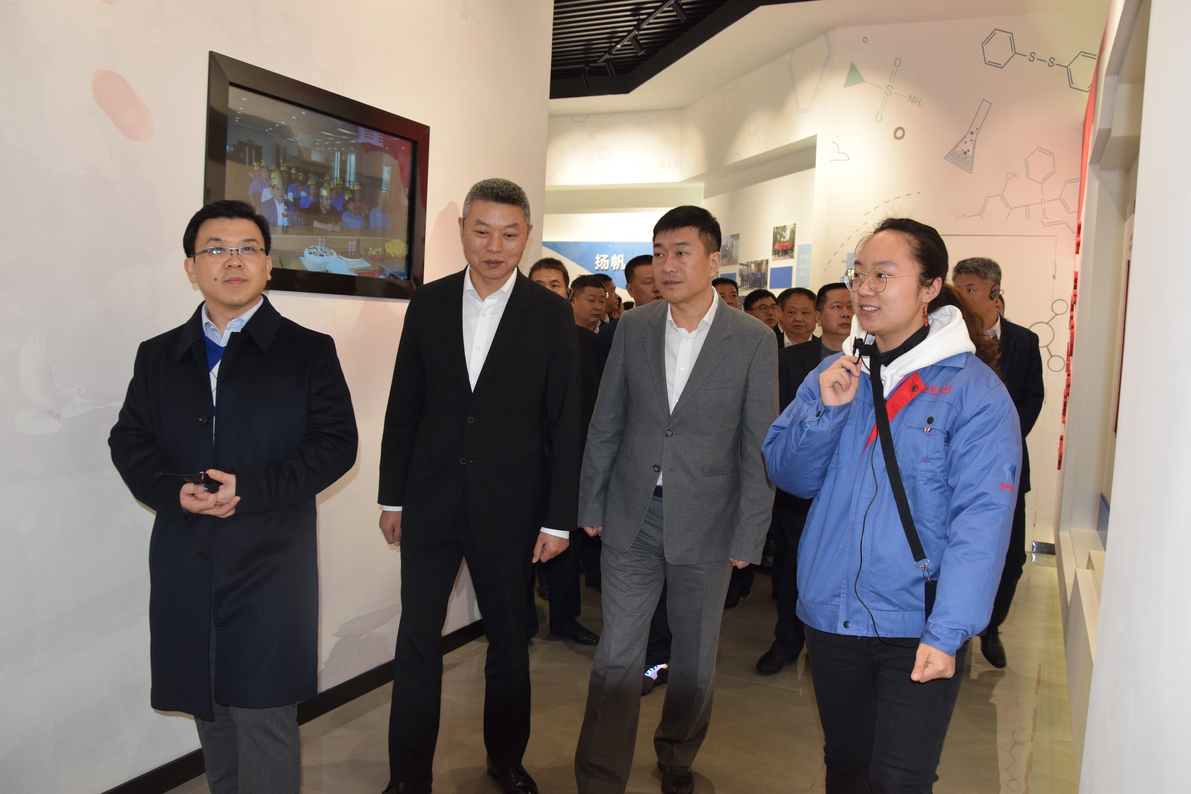 首先,張書記一行參觀了企業發展(產品)展示廳、黨建展廳。樊彬董事長向各位領導就公司發展歷程、企業文化、產品工藝流程、設備裝置、市場前景等方面進行了介紹,并就公司目前的運營情況、主要產品、發展目標、競爭優勢、人才戰略等方面做了重點匯報。
