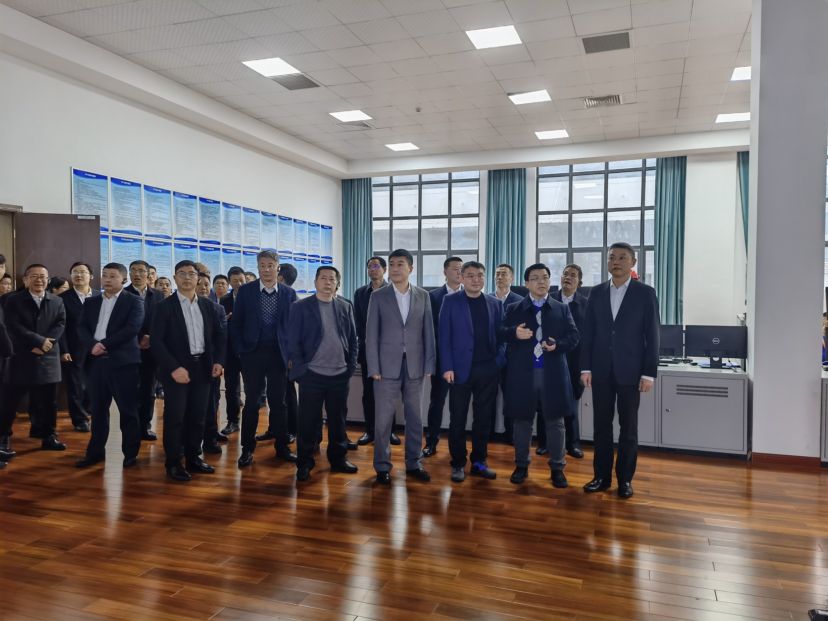 隨后,各位領導參觀了公司的中控室,雙方就數字化、自動化的工程控制技術,新材料領域發展趨勢等進行了深入交流。張壯雄書記對企業展現的科技硬實力表示十分贊賞,并鼓勵我司再接再厲,不斷自我提升,為城市建設貢獻更多力量。