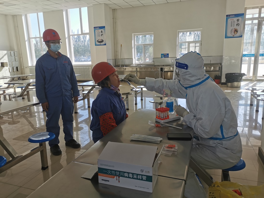 10月8日,根據(jù)阿拉善盟阿拉善高新技術(shù)產(chǎn)業(yè)開發(fā)區(qū)疫情防控部署最新要求,印發(fā)《內(nèi)蒙古揚(yáng)帆新材料有限公司進(jìn)一步加強(qiáng)新冠肺炎疫情防控工作要求》;建立疫情防控定期檢查工作機(jī)制,定期排查重點(diǎn)返回人員,確保外來人員溯源信息“零疏漏”,緊盯疫情防控重點(diǎn)區(qū)域、重點(diǎn)環(huán)節(jié)等風(fēng)險點(diǎn),開展監(jiān)督檢查,確保疫情防控“零死角”;積極配合政府開展核酸檢測工作,10月10日,按照相關(guān)要求,公司聯(lián)系醫(yī)護(hù)人員到工廠開展全體職工集中核酸檢測工作,核酸采樣前,做到了提前通知,安排到位。采樣過程中,全體職工自覺遵守防控要求,有序排隊,掃健康碼,10人一組,等候檢測。醫(yī)護(hù)人員逐一為職工做咽拭子采樣,相關(guān)工作人員在現(xiàn)場維護(hù)秩序,登記、核對信息,整個過程井然有序,采樣流程快速高效,1小時完成全體職工采樣工作。