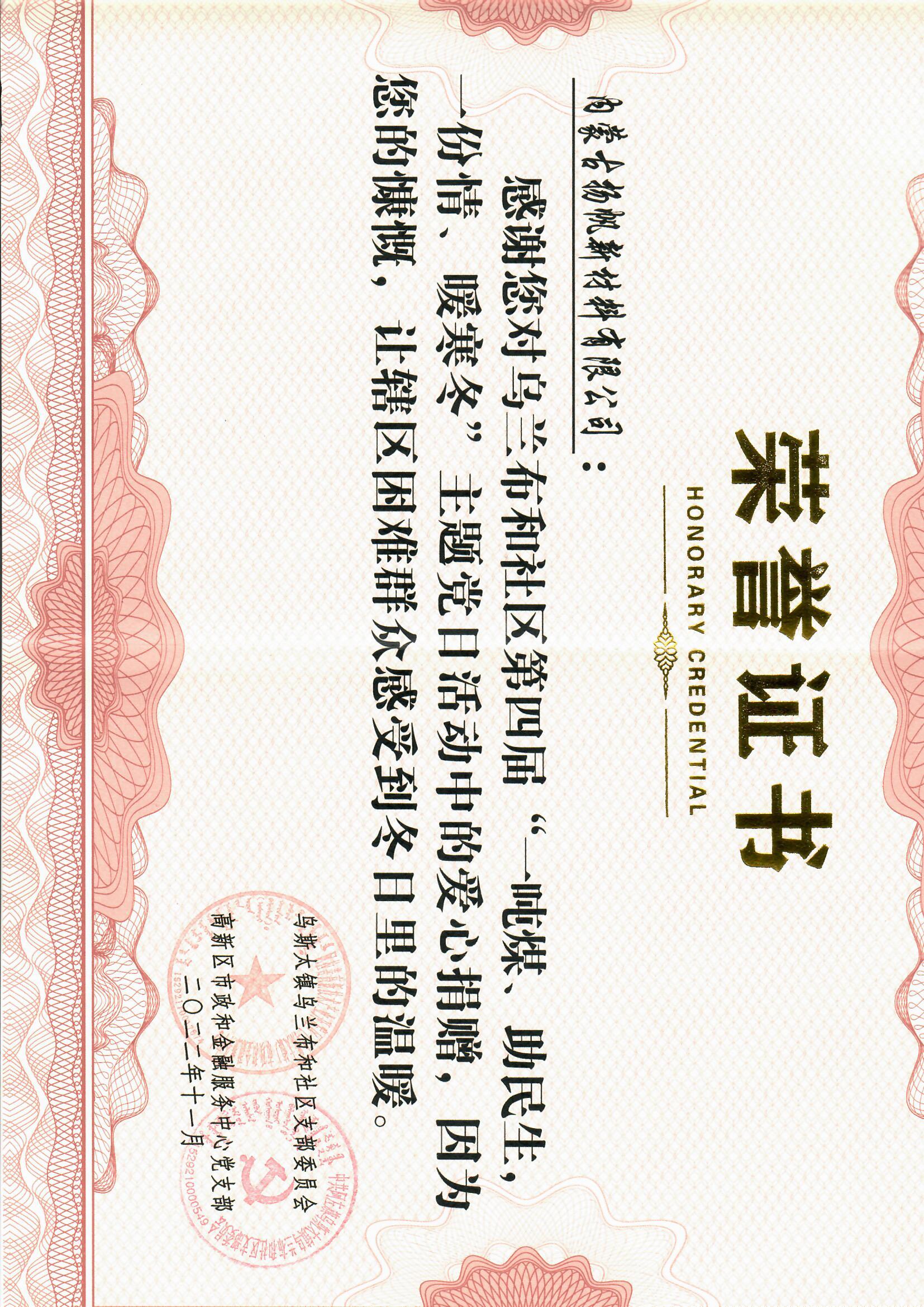 捐贈(zèng)儀式上,烏蘭布和社區(qū)工作人員表示,各企業(yè)“暖心煤”不僅僅溫暖了社區(qū)干部群眾的心,也切實(shí)解決了困難群眾和環(huán)衛(wèi)工人的“燃煤”之急,讓這個(gè)寒冷的冬天溫暖加倍,暖身又暖心。隨后,社區(qū)代表們?yōu)閻坌钠髽I(yè)頒發(fā)證書,以此來表達(dá)對(duì)駐地企業(yè)暖心之舉的感謝。