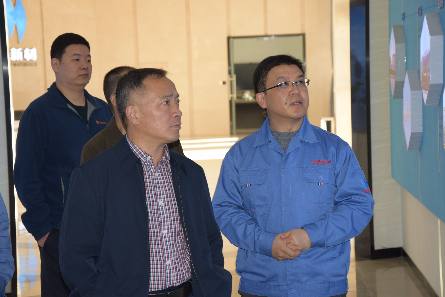 劉潔陽一行參觀了公司展廳并觀看了企業宣傳片,樊彬董事長簡要介紹了揚帆新材的發展定位和目標、公司的發展歷程及現階段產品研發情況,并詳細介紹了公司各產品的功能,市場情況,企業文化及核心價值觀——“仁德創富,成己惠人。劉潔陽副主任對揚帆新材的發展和對社會作出的貢獻表示高度贊揚。